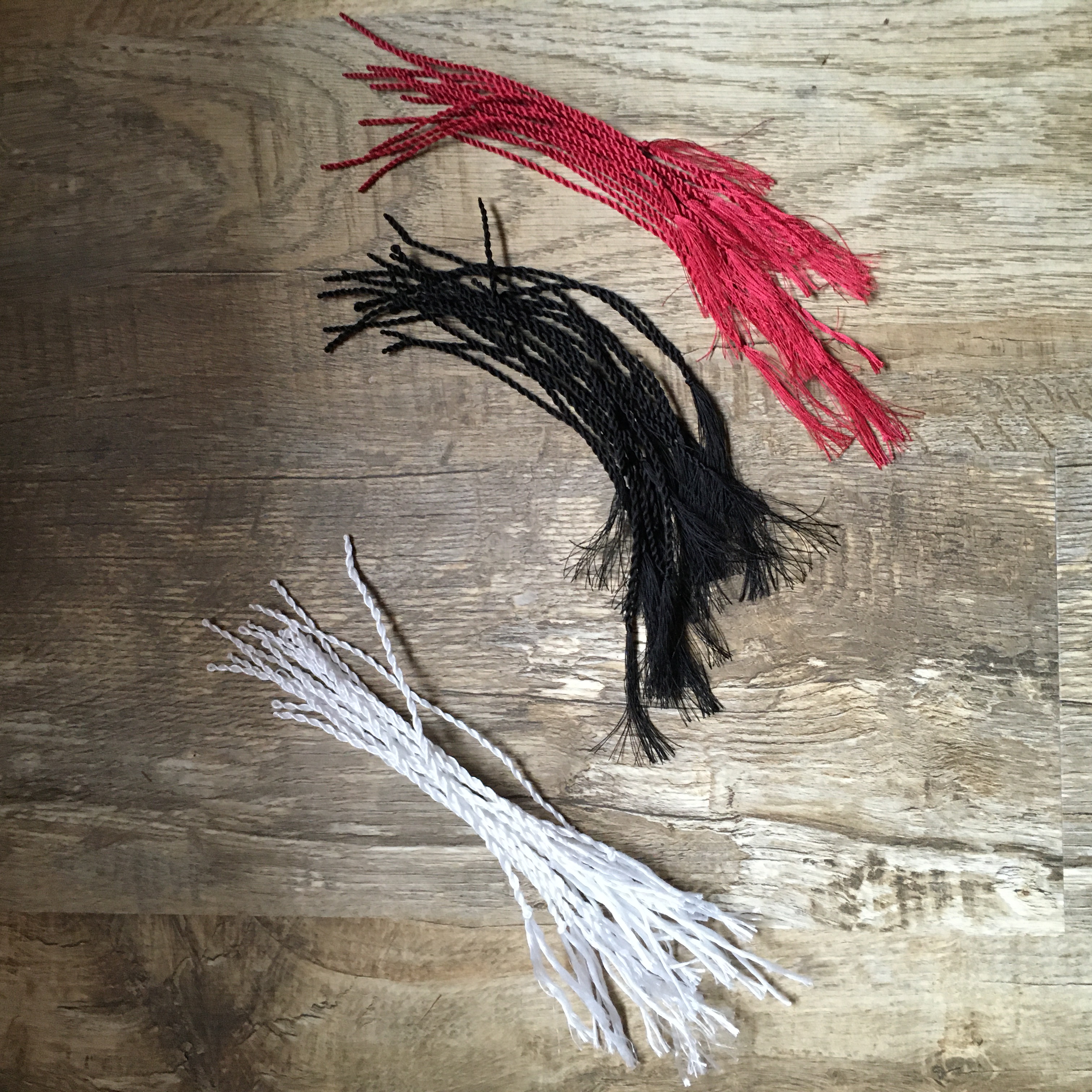 package of 5 crackers. choose between black nylon, red nylon or white polypropylene. (Purchase now to reserve; shipping calculated after purchase. ) Specify in the comments when you place the order or message me at contact@smokymountainwhips.com